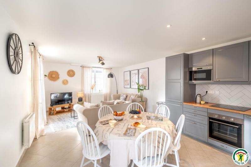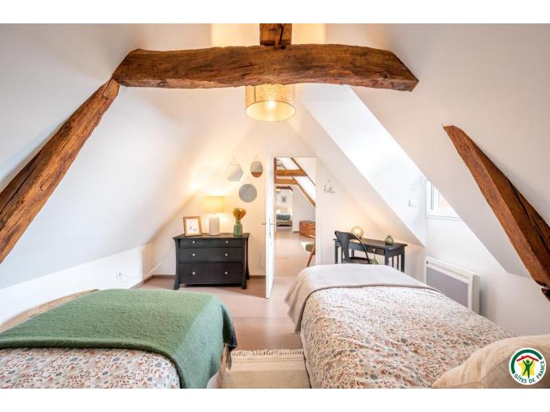 Le gîte Les Hauts de Campagne est parfait pour des vacances en famille. Cette charmante maison de caractère de 90 m² est nichée dans une propriété totalement close, où vous pourrez garer en toute sécurité deux voitures, profiter du jardin entièrement clos sans aucun vis-à-vis et de la terrasse équipée d'un salon de jardin et d'un barbecue. Ce gîte de caractère est aménagé sur 2 niveaux et dispose de 3 chambres, offrant cinq couchages. Le rez-de-chaussée comprend une grande entrée avec placards, une cuisine équipée ouverte sur le salon (2 canapés, TV 108cm), une buanderie (lave-linge / sèche-linge/ table et fer à repasser), une salle d'eau 94X94 avec Wc, une chambre pour 2 personnes (1 lit de 160x200 cm) avec bureau. L'étage (sous comble) dispose de 2 chambres pour 2 personnes chacune (2 lits de 90x200 cm modulables en lit 180x200 cm dans une chambre et 2 lits de 80x200 cm modulable en lit de 160x200 cm), une salle de bain et des WC indépendants. Wifi fibre -